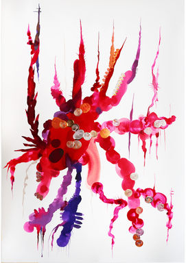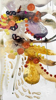 Serie linaje 2020 acuarelas sanguíneas (plasma y glóbulos rojos ) sobre papel de algodon 58 x 78 cm.