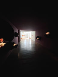 Las 5 vidrieras restantes representan el exterior de ese jardín idílico que se aloja en las demás salas de todo el museo. Son brotes de ramas que rompen los tabiques e intentan apoderarse del espacio. Ramas y raíces que se integran a la pared a modo de mural urbano. Están habitados por pequeños híbridos realizados con restos de insectos.